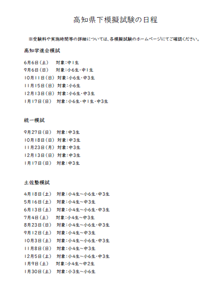 今年度の『高知県下での模擬試験の日程』が確定しました。